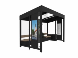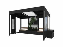 Smart City Bus Stop to innowacyjny przystanek autobusowy zasilany energią słoneczną. Oferuje ładowanie urządzeń, podświetlany rozkład jazdy i monitoring, poprawiając komfort i bezpieczeństwo pasażerów. Wbudowana donica na rośliny oraz pojemnik recyklingowy sprawiają, że przystanek jest ekologiczny. Ponadto, dzięki podświetlanej gablocie miasto zyskuje atrakcyjną powierzchnię reklamową. Przystanek można wyposażyć w system monitoringu, co podniesie poziom bezpieczeństwa pasażerów i umożliwi nadzór miejskich przestrzeni.