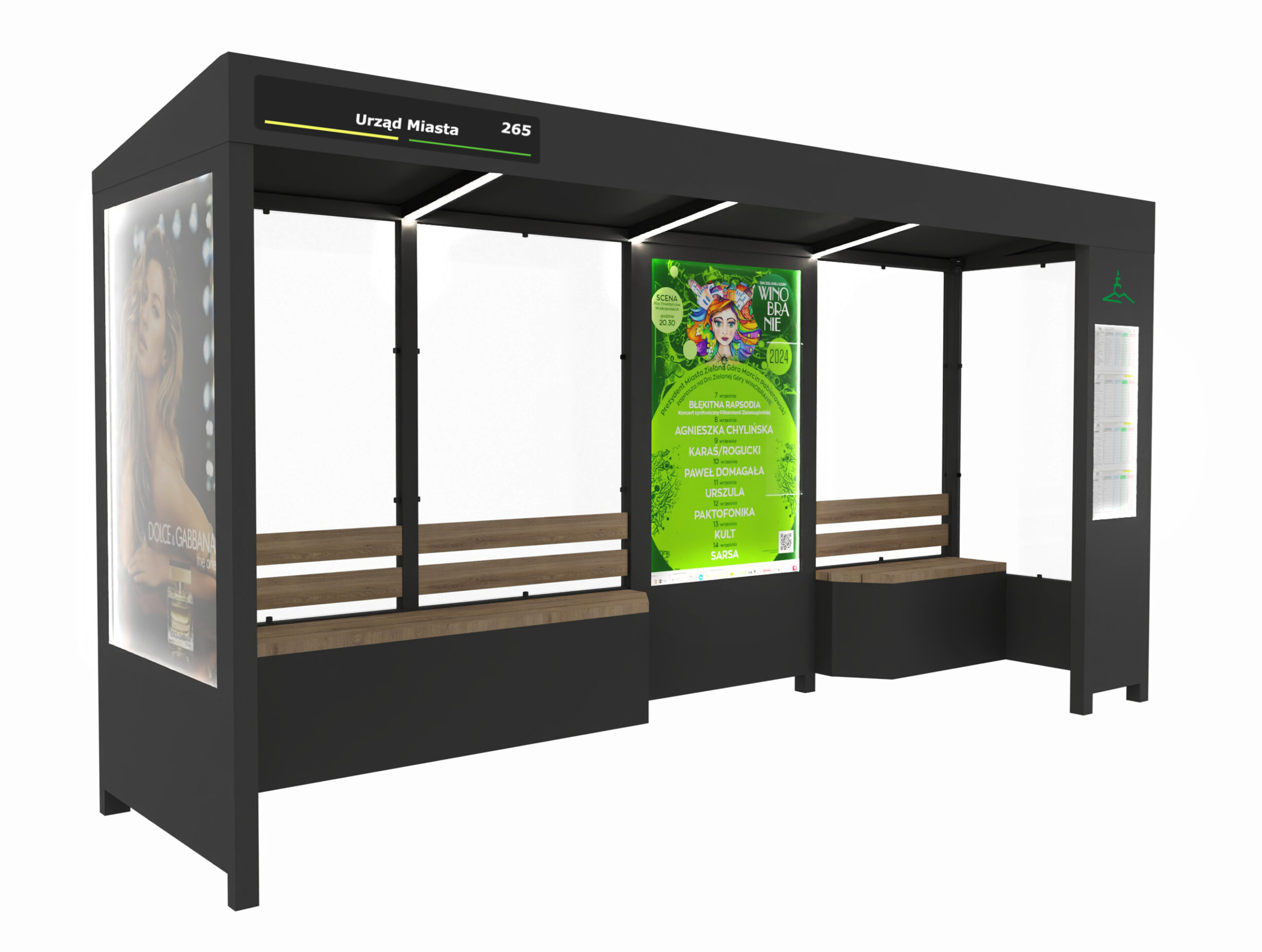 Smart City Light to modułowy przystanek autobusowy wykorzystujący energię słoneczną do zasilania różnych funkcji. Ciekawe wzornictwo i nietuzinkowe materiały sprawiają, że jest on doskonałym rozwiązaniem dla nowoczesnych miast. W standardzie konstrukcji znajdują się dwie dwustronne powierzchnie reklamowe o wymiarach 120×180 cm. City Light daje możliwość generowania przychodu z reklam umieszczanych w podświetlanych gablotach. Zasilanie energią słoneczną oferuje ładowanie urządzeń elektrycznych, mobilnych oraz oświetlenie. Gablota z podświetlanym rozkładem jazdy, komfortowe siedziska oraz możliwość obrandowania przystanku w elementy identyfikacji miejskiej czyni go niezwykle funkcjonalnym elementem architektury publicznej.