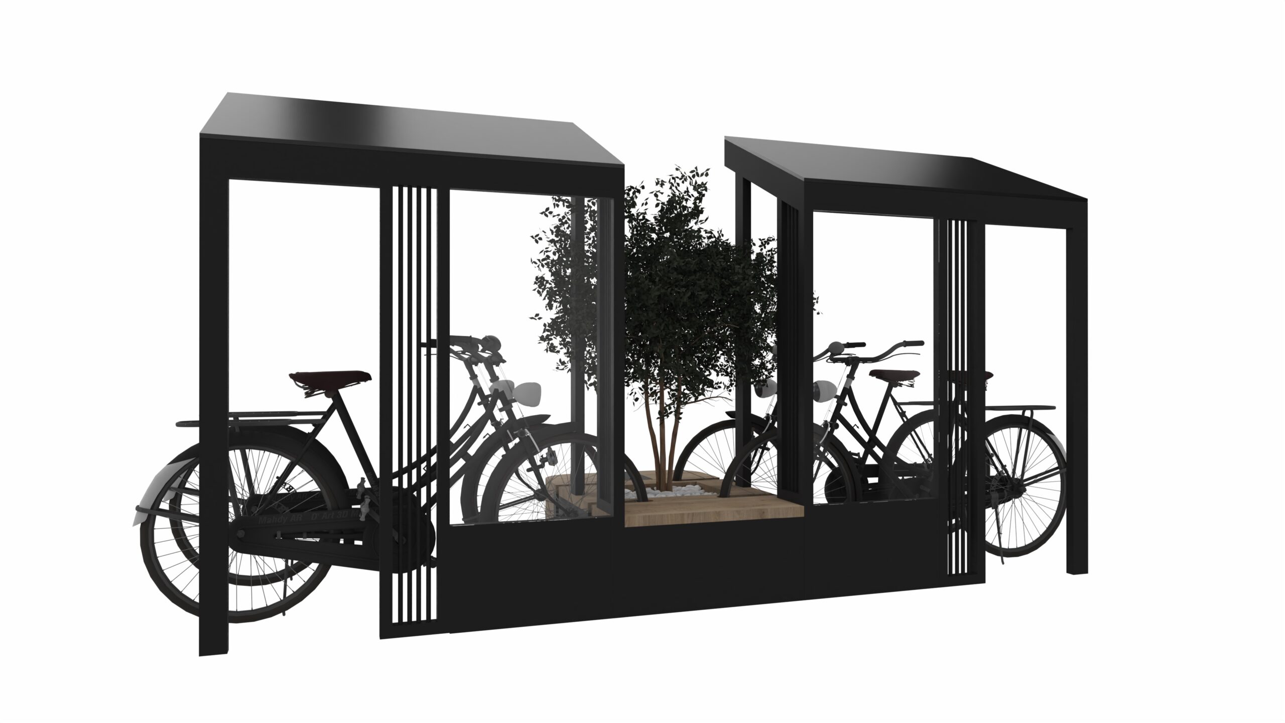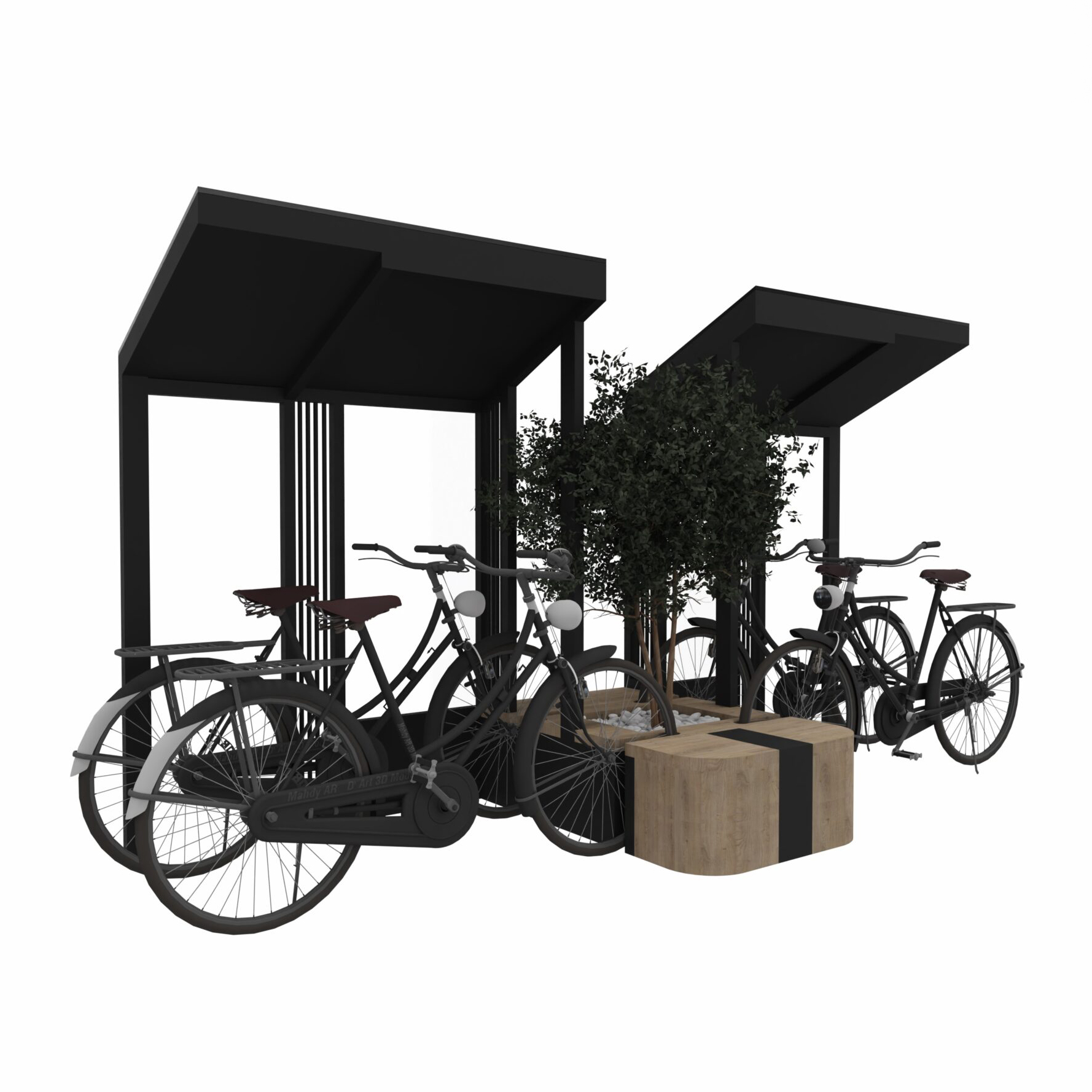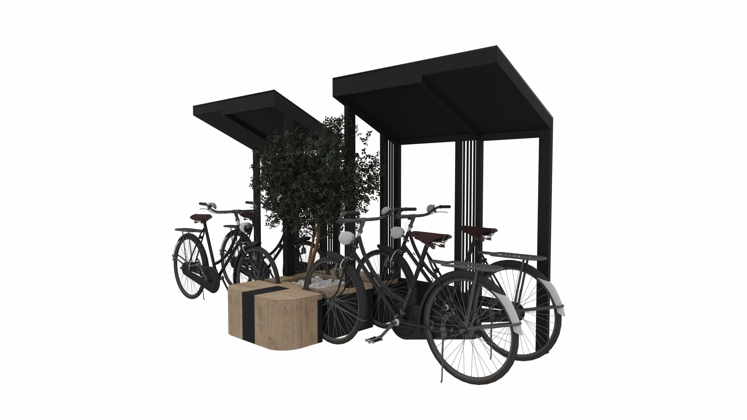 Smart City Bike Station to nowoczesna wiata z siedziskiem i stojakami na rowery. Panele fotowoltaiczne na dachu wiaty pozwalają na przetwarzanie energii słonecznej na elektryczną i przechowywanie jej w magazynie energii. Daje to możliwość bezpłatnego ładowania rowerów, hulajnóg elektrycznych oraz urządzeń mobilnych. Innowacyjne rozwiązania podnoszą komfort korzystania ze ścieżek rowerowych i przestrzeni publicznej. Wbudowana donica z roślinami dodaje estetyki i wspiera ekologiczne inicjatywy. Nowoczesny design stacji idealnie komponuje się z miejską architekturą oraz pozamiejskimi ścieżkami rowerowymi, tworząc przyjazne i innowacyjne miejsce dla mieszkańców i turystów.